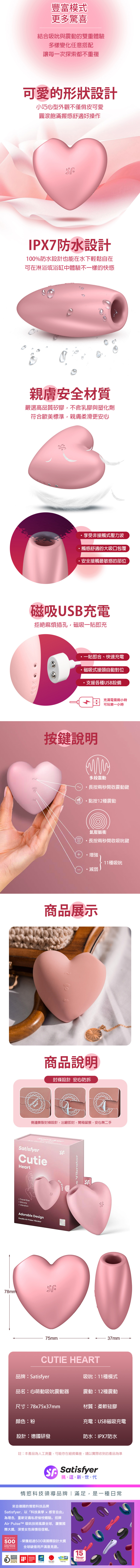 品名:Satisfyer|Cutie Heart|心萌動 陰蒂吸吮震動器